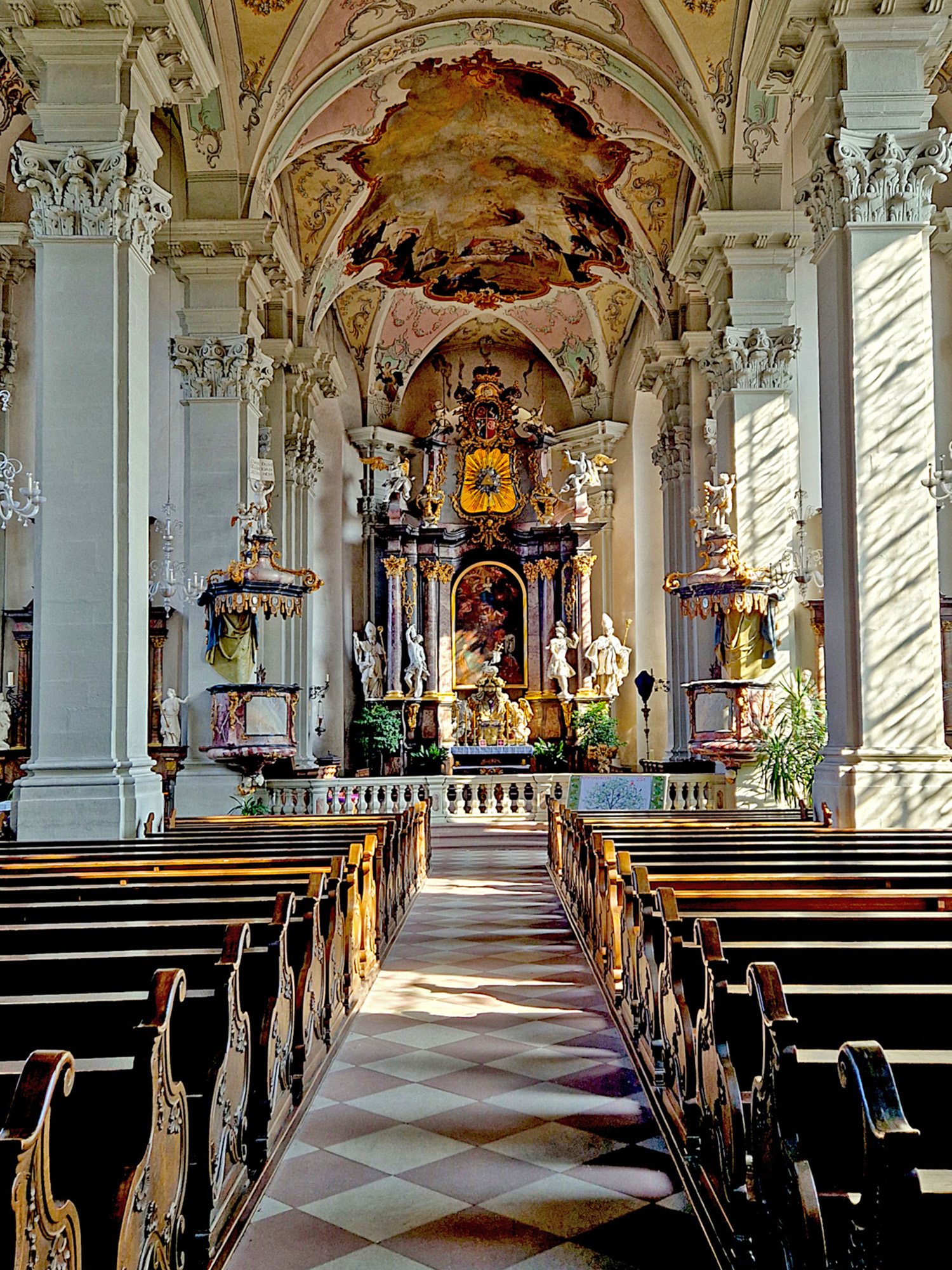 Amorbach (Odw.): Blick durch die Abteikirche