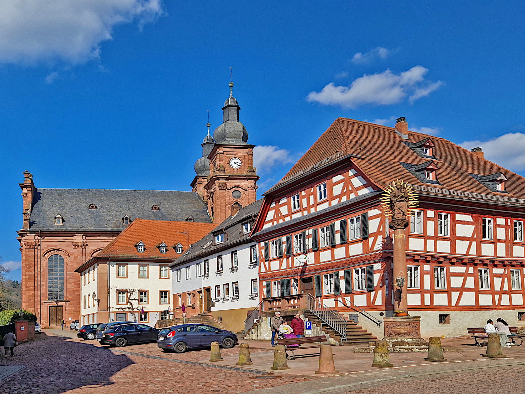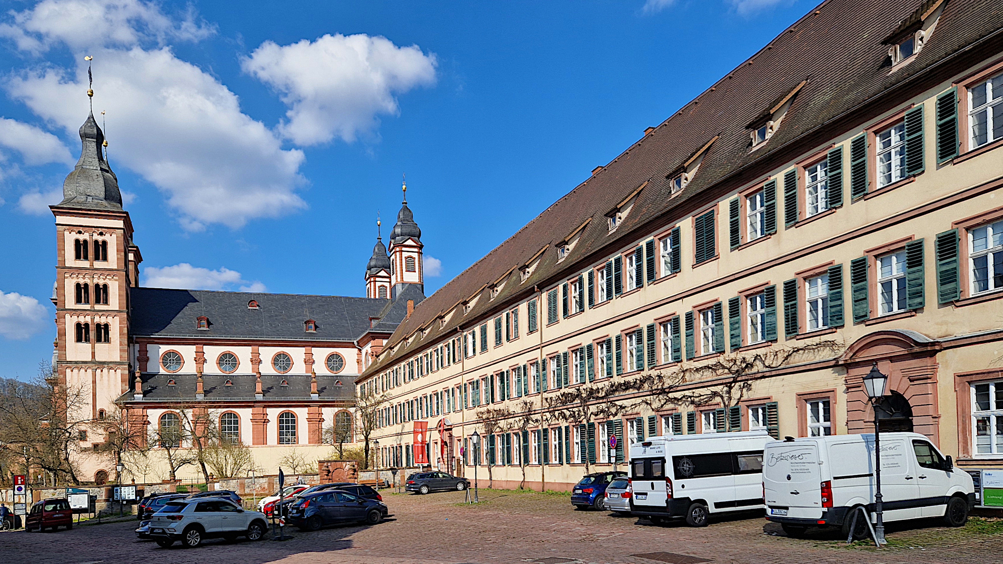 Amorbach (Odw.): Schlossplatz mit Blick auf die Abteikirche