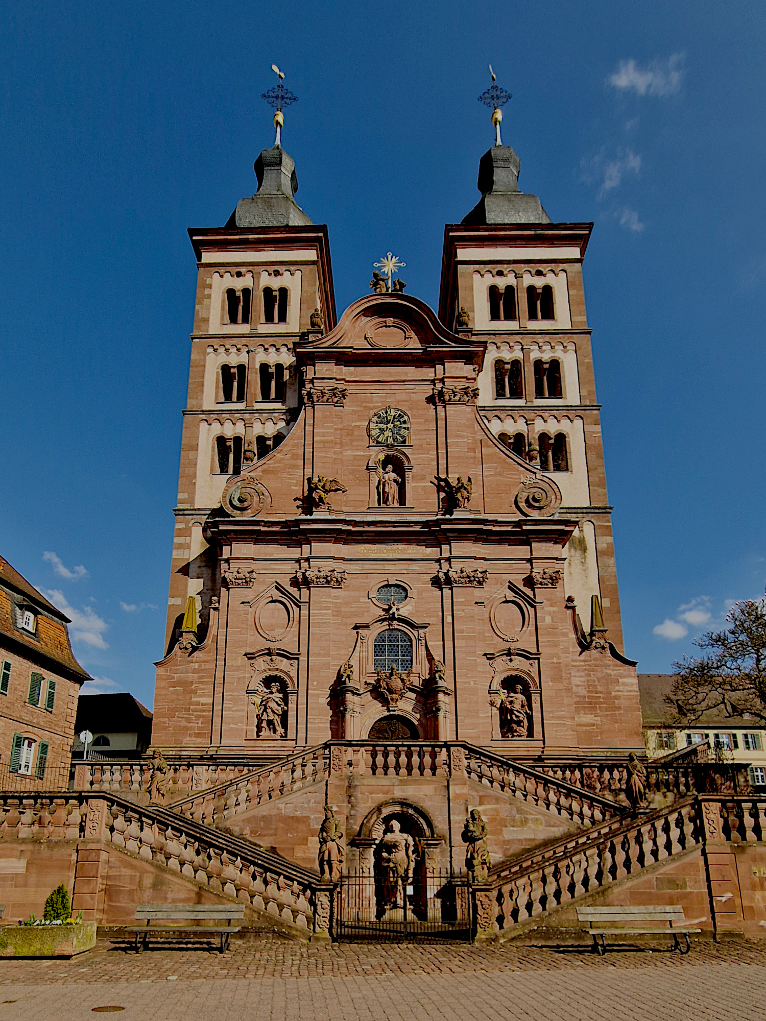 Amorbach (Odw.): Doppeltürme der Abteikirche